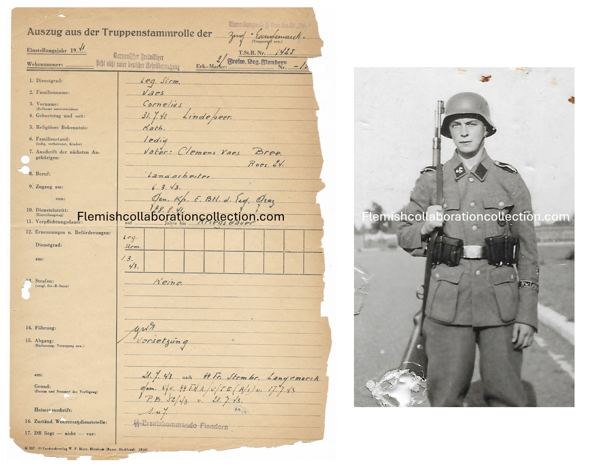 – intreding: 28.8.41 - SS Fr. Sturmbr. Langemarck: versetsung am 21.7.43