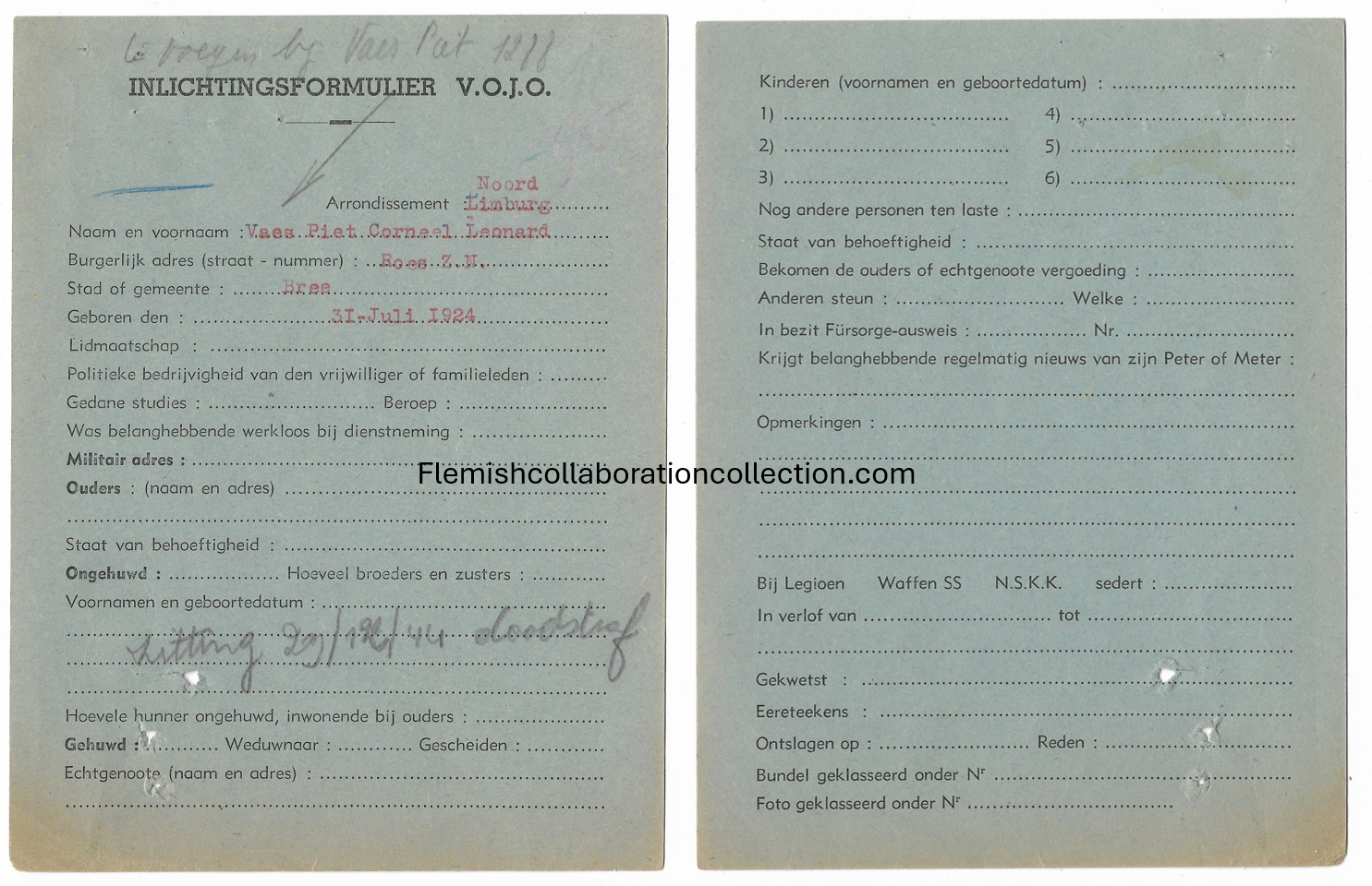 VOJO inlichtingsformulier van Leonard Vaes